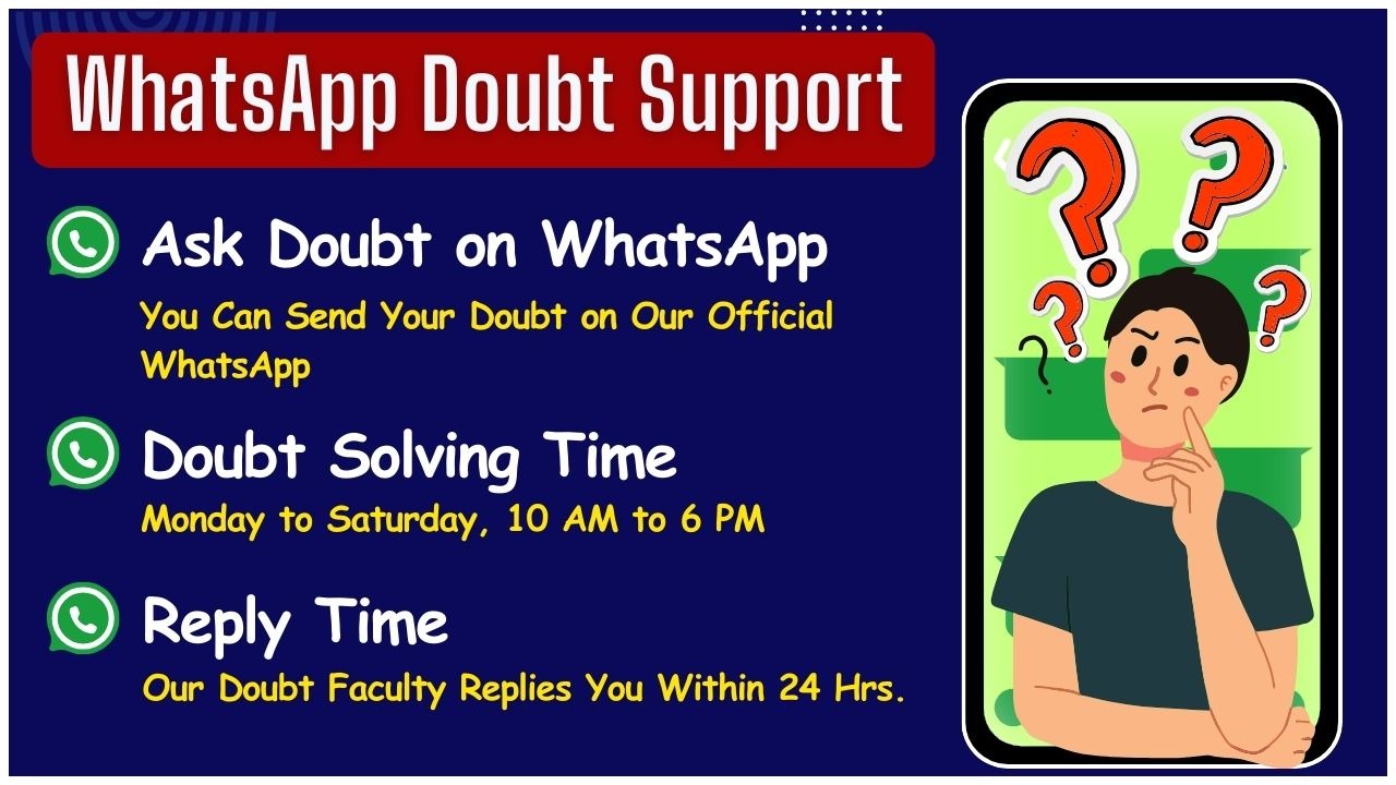 Yes, इस Course में Doubt Solving Facility Provide की गई है | Doubt Solving Facility का क्या मतलब है, जानने के लिए "Click Here" पर Click करके Video देखें :- 👉 Click Here 👈